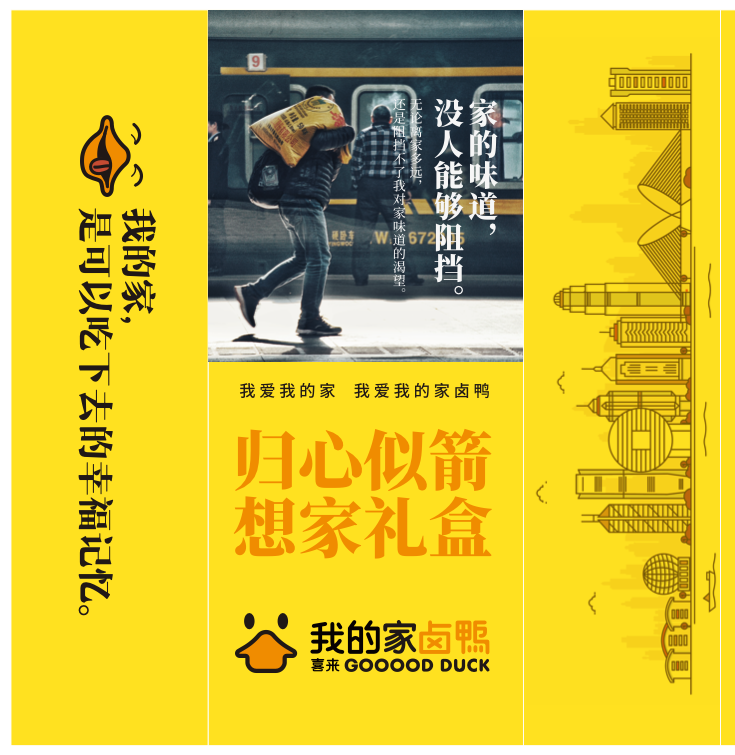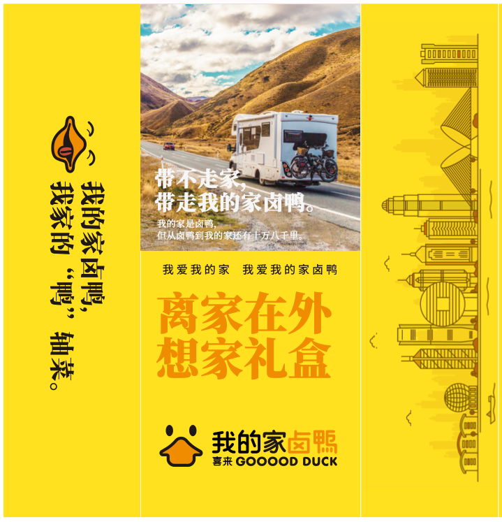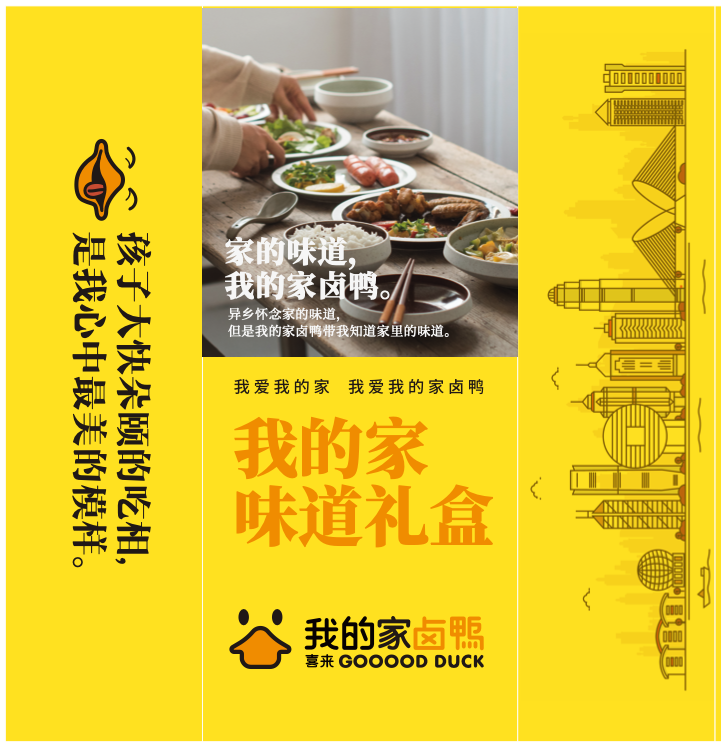 本次设计项目以“传统与现代的碰撞,文化与美食的融合”为理念,力求通过设计传递“我的家卤鸭”的品牌文化——不仅是一道美味的传统美食,更是消费者情感的载体和生活的一部分。设计方案围绕消费者的感知与使用体验展开,使产品包装成为品牌传播的延伸,与消费者形成情感连接。