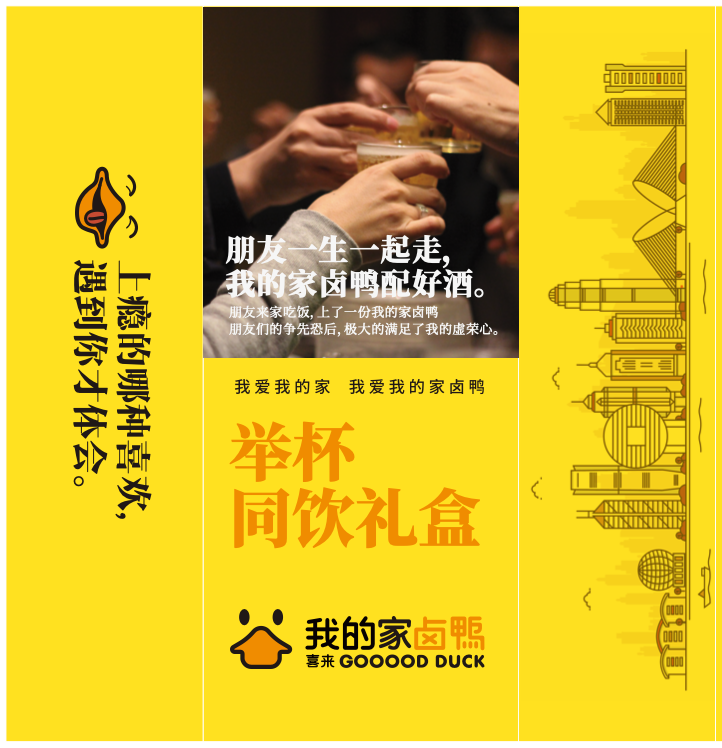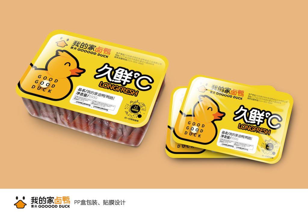 设计团队通过设计一套独具特色、富有美感的VI视觉识别系统,并对纸袋包装、保鲜膜包装、礼盒包装及内包装进行创新设计,帮助“我的家卤鸭”提升品牌辨识度、传递产品价值与文化内涵,增强消费者的品牌忠诚度。