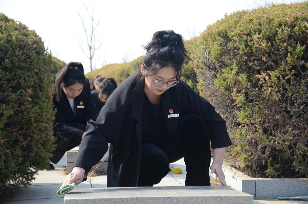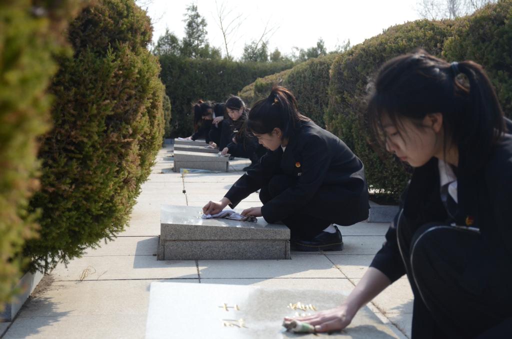 随后,全体师生为解放锦州牺牲的革命烈士擦拭墓碑并对周边环境进行清理打扫,用实际行动表达对革命先烈的无限敬仰和哀思。