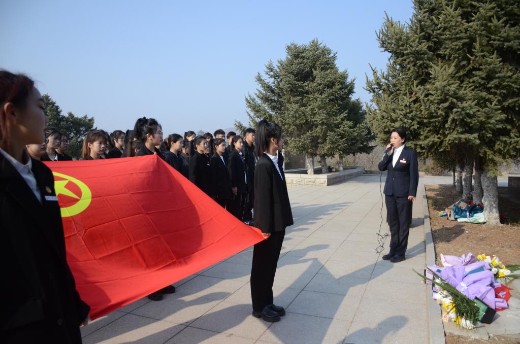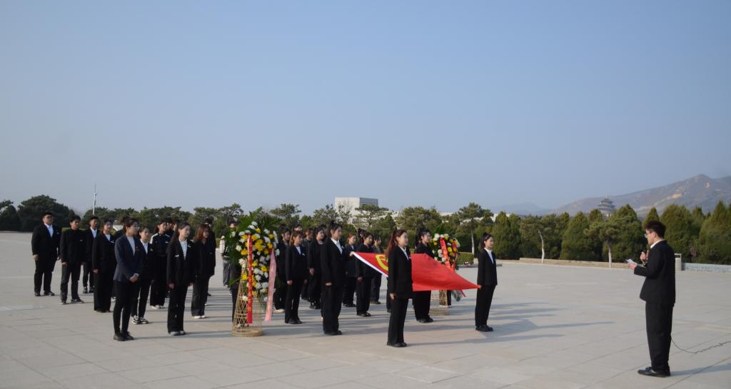 上午9时整,祭扫活动开始。全场齐声高唱中华人民共和国国歌,同学们怀着对革命先烈无比的敬意,整装列队,面向英雄墓碑肃立默哀,鞠躬致敬,并向烈士墓碑敬献花篮,缅怀革命先烈,致敬人民英雄。在革命烈士纪念碑前,青年学子集体朗诵李大钊《青春》节选并庄严宣誓“请党放心,强国有我”。“为世界进文明,为人类造幸福,以青春之我,创建青春之家庭,青春之国家,青春之民族,青春之人类,青春之地球,青春之宇宙,资以乐其无涯之生”。青年学子齐诵《青春》誓言,深刻感受到红色江山来之不易,守好江山责任重大。