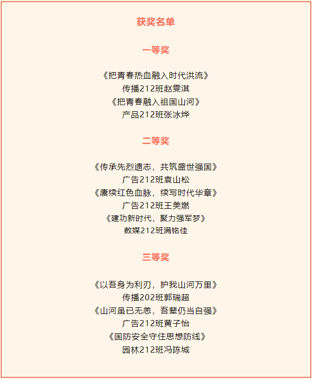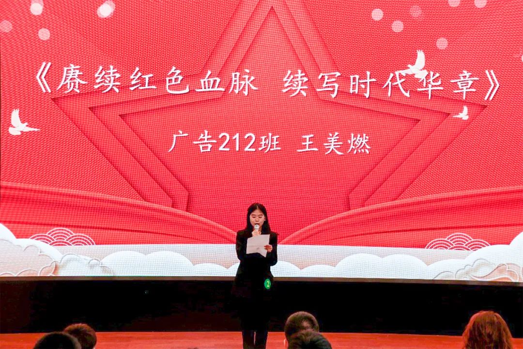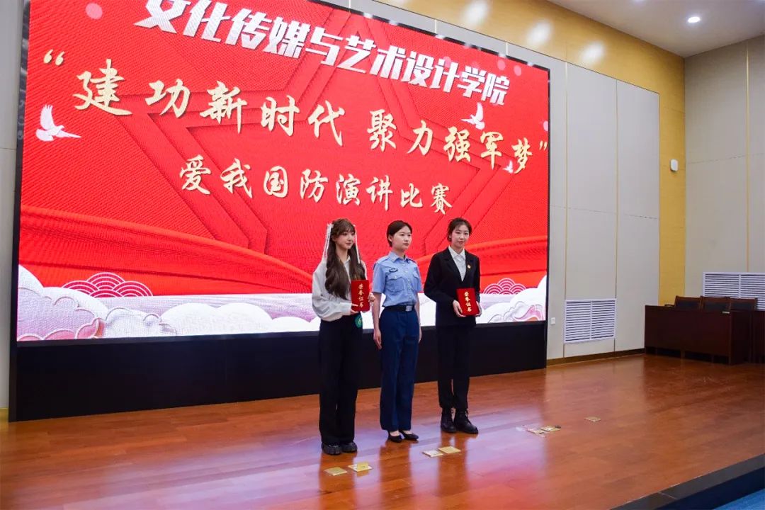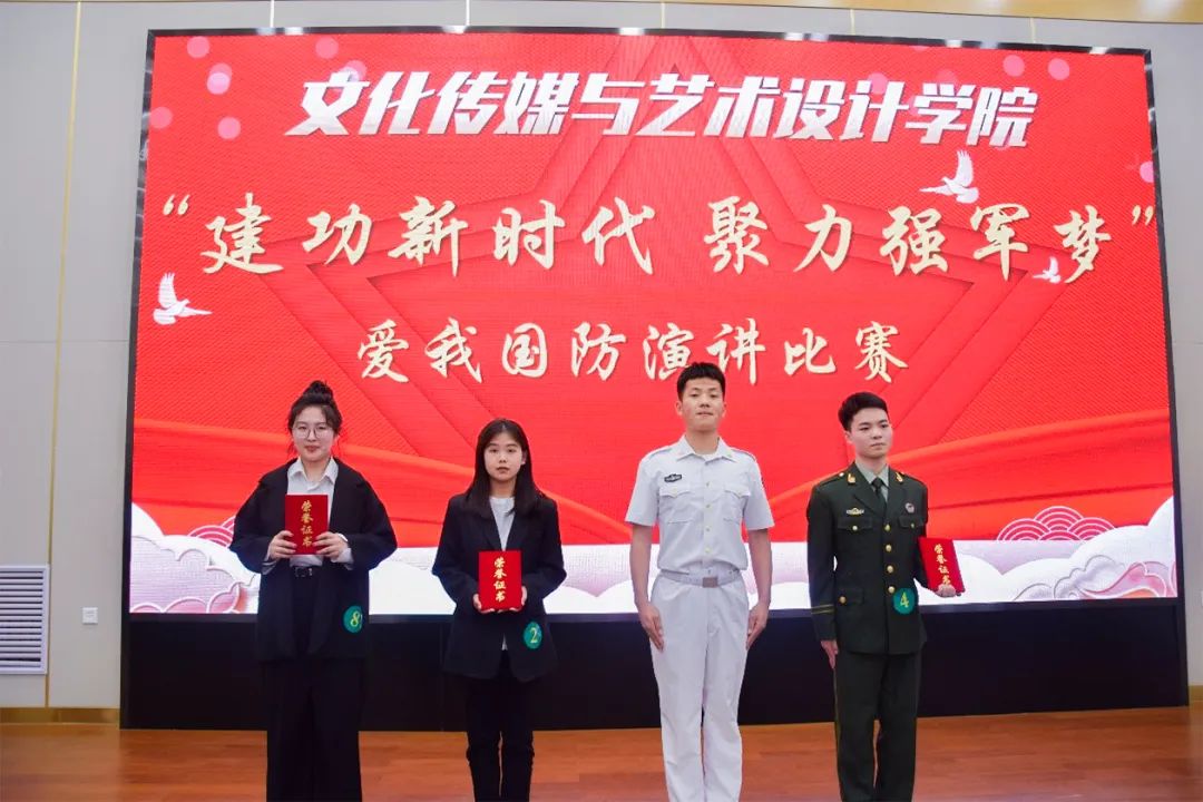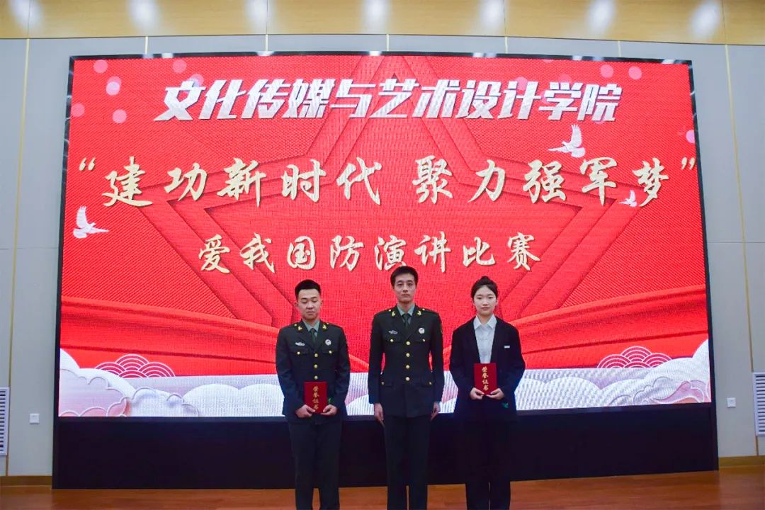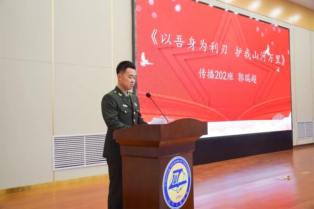 选手们围绕主题展开慷慨激昂的演讲。一句句感悟、一声声号召,深深打动观赛的师生,引起大家的强烈共鸣。经过激烈角逐,比赛最终评选出一等奖2名、二等奖3名、三等奖3名,并邀请校2021年优秀退役老员工、辽宁省第七届老员工爱我国防演讲比赛三等奖、校一等奖获得者、省优秀毕业生、传播192班王文智,优秀退役老员工、产品202班李阳阳,优秀退役老员工、广告221班陈令辉三名同学为获奖者颁奖。