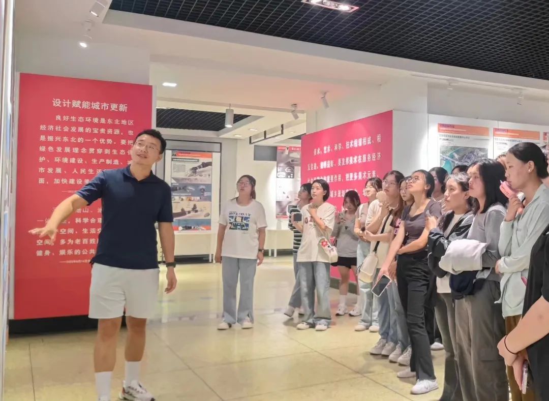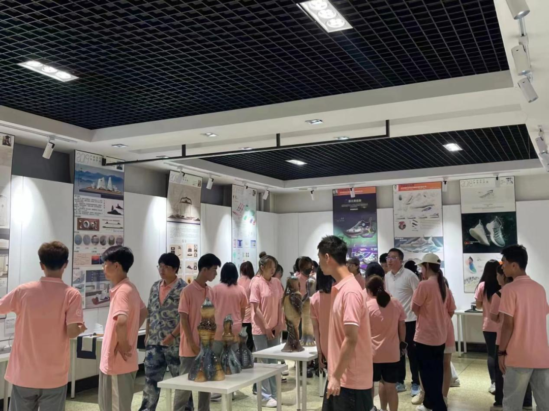 在专业教育的过程中,还组织同学们参观了公司《设计赋能高质量发展》设计成果展。各专业教研室主任对展厅内的作品进行了讲解,特别是设计成果背后的故事,使同学们更为直观地了解所学专业,加深对专业以及课程内容的了解。同学们在作品前驻足停留,专注地学习、欣赏。