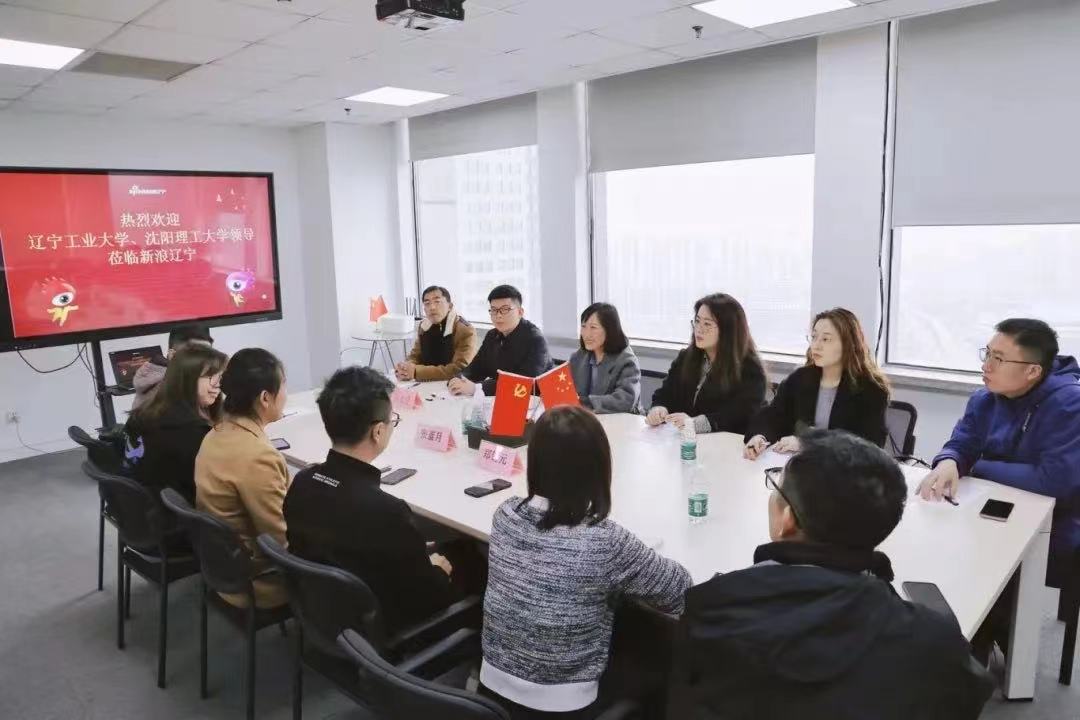 陈爽一行与新浪辽宁负责人及各部门总监交流中,介绍了公司基本情况和传媒设计公司学科特色与专业优势,展示了公司多年来的办学成果。双方就“新浪传设工作室”建设、毕业生与实习生招聘、校外实践基地建设等方面达成合作意向。与东软医疗品牌部负责人座谈中,了解了行业发展动态和人才市场需求,并就校企合作人才培养、创新创业指导与培训、横向课题开发等进行了探讨,双方希望进一步对接需求,尽快促成合作。