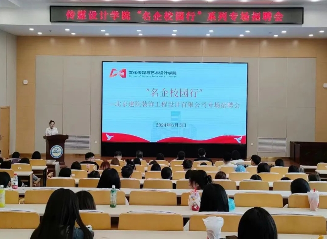 宣讲会上,北京建院装饰工程设计有限公司行政总监王贞亮、上海分公司设计总监孙霆,辽宁旋风文化科技有限公司董事长韩振、人力资源部部长罗璐,分别介绍了两家公司的企业文化以及发展前景、薪资待遇、招聘流程等,就同学们关心的问题进行了互动交流。活动中,锦州市人社中心毕业生就业服务科王欢、田甜还为同学们介绍了留锦就业创业的优惠政策和相关补贴,鼓励同学们留锦就业发展。