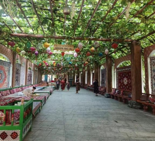 经济的高质量发展离不开民族地区特色产业的支撑与助力。走学访悟实践团的同学们继续跟随总书记的脚步来到了位于新疆吐鲁番市的葡萄沟。葡萄沟依托自身良好的区位交通优势及葡萄文化、民俗文化等优势,大力发展旅游业。村民通过销售农副产品,开班农家乐,特色民宿等方式,逐步走上了增收致富的道路。据数据统计,葡萄沟旅游业间接带动就业3000余人,当地农民年收入三分之一来自旅游业。