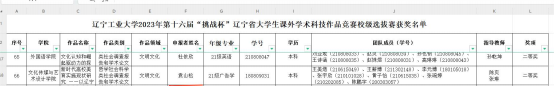2023 年 5 月获第十六届挑战杯辽宁省课外学术科技竞赛校二等奖