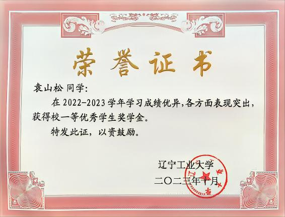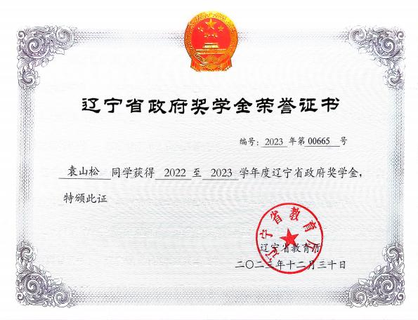 2023 年 10 月获评辽宁省政府奖学金