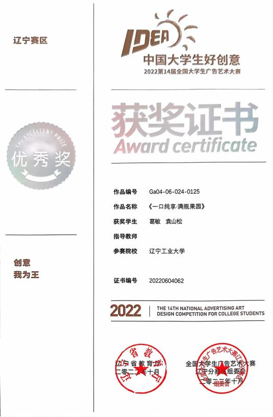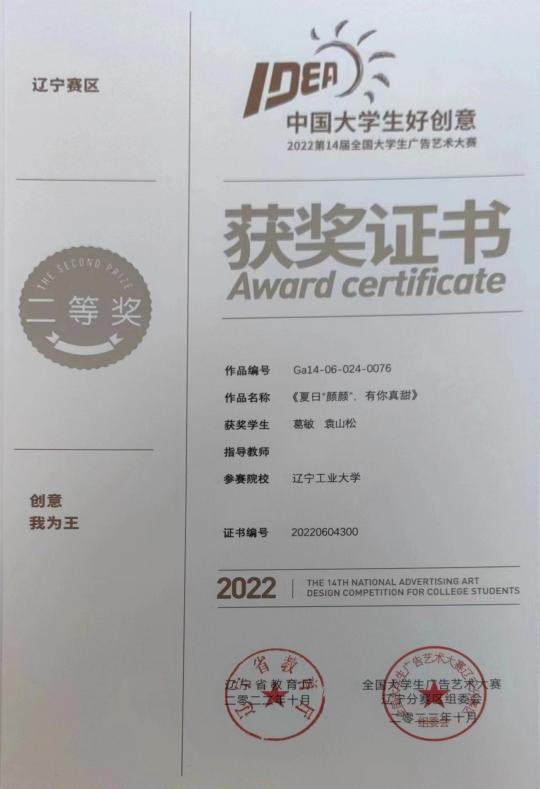 2022 年 7 月获第十四届老员工广告艺术大赛省级一等奖、省级二等奖、省级优秀奖