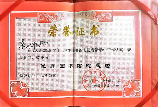 7.2018-2019 学年上学期获评优秀图书馆志愿者;