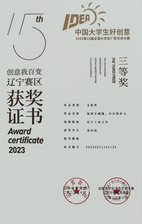1.2022 年 7 月获第十四届老员工广告艺术大赛省级一等奖、省级二等奖、省级 优秀奖;
