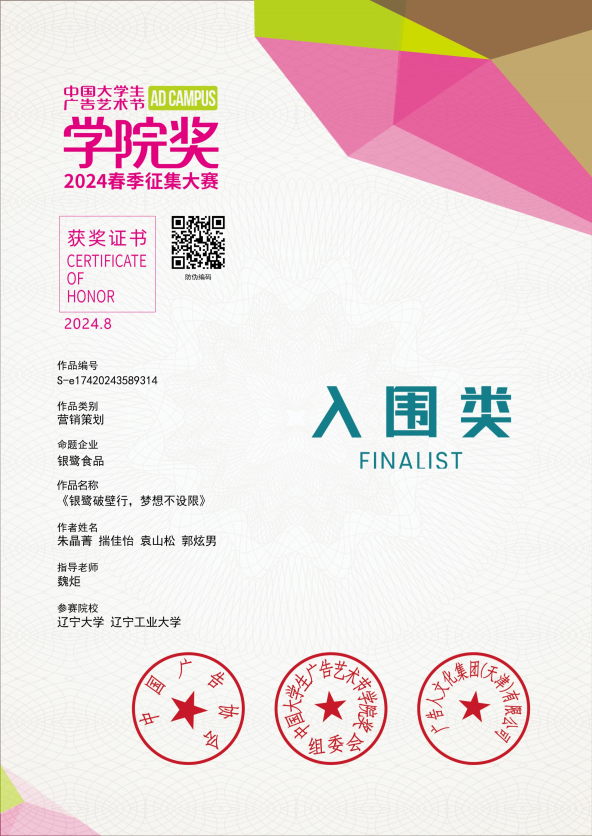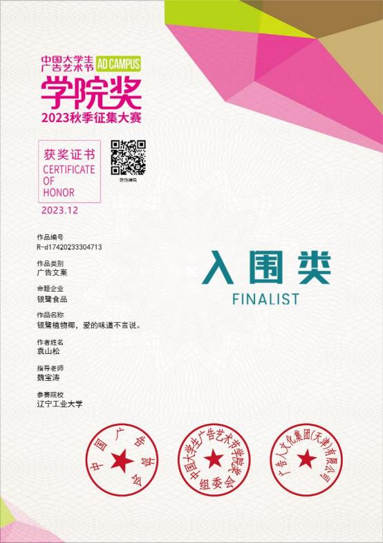 2023 年 12 月获中国老员工广告艺术节公司奖入围奖两项