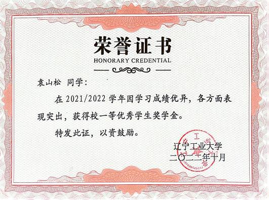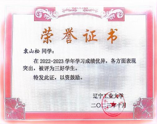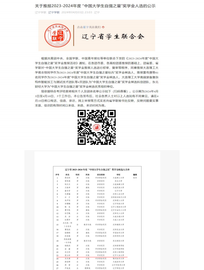 4.2023 年 10 月获评辽宁省政府奖学金;
