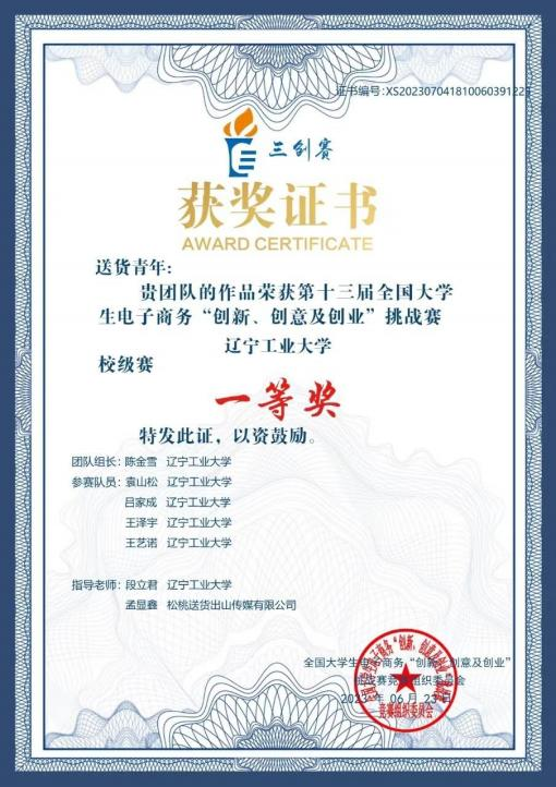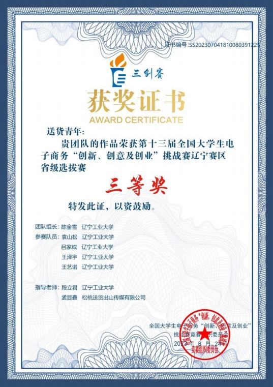 2023 年 8 月获第十三届全国老员工电子商务“创新、创意及创业”省级三等奖