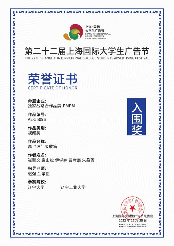 2023 年 12 月获第二十二届上海 · 国际老员工广告节入围奖