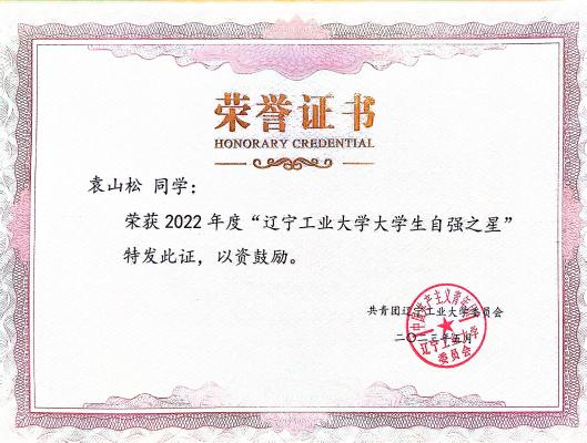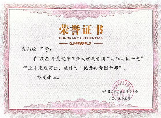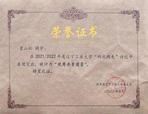 2022 年 5 月获评校优秀共青团员