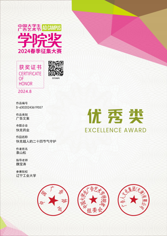 9.2024年公司奖春季入围奖两项,优秀奖两项
