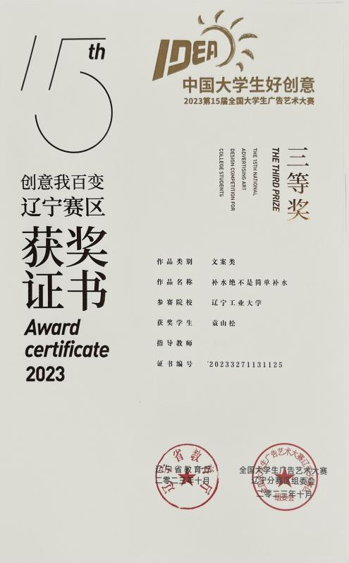 15.2023 年 7 月获辽宁省第九届建行杯“互联网+”老员工创新创业大赛校一等 奖。