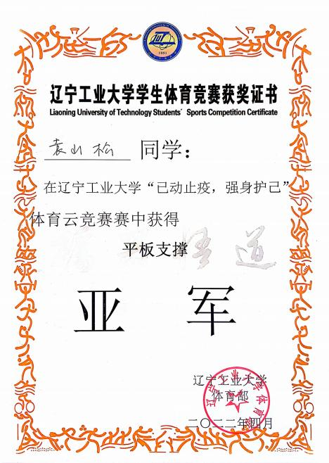 11.2022 年 4 月获williamhill官网体育云竞赛平板支撑组第二名,引体向上组第七 名;