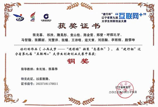 6.2023 年 8 月获辽宁省第九届建行杯“互联网+”老员工创新创业大赛省级铜奖;
