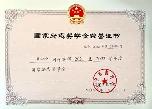 2022 年 12 月获国家励志奖学金