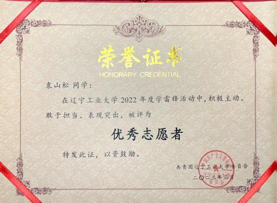 2023 年 3 月获评校优秀志愿