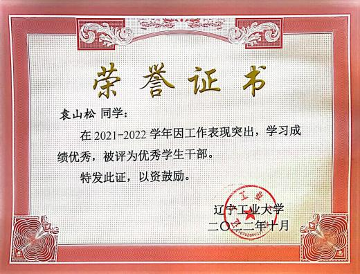 2023年5月获评校优秀共青团干部