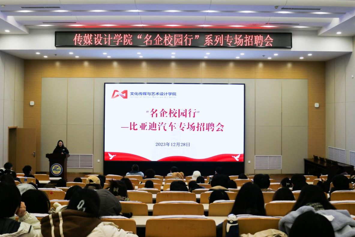 宣讲会上播放了比亚迪汽车企业宣传片,全面介绍了比亚迪汽车发展历程和前景展望。比亚迪汽车HR朱梦霏首先介绍了比亚迪汽车的企业文化以及发展前景、薪资待遇、招聘流程。比亚迪汽车设计中心经理苏伦高娃对设计中心、招聘岗位及豹5内饰设计进行了解读。