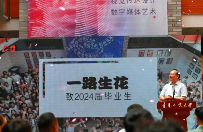 鲜花铺满来时路,锦绣繁华启新程。开幕式最后播放了传媒设计公司2024年毕业季MV《一路生花》。一帧帧影像记录了同学们青春成长的奋斗足迹,祝愿同学们一路生花,一直走在开满鲜花的路上,为人民设计,为祖国传播。