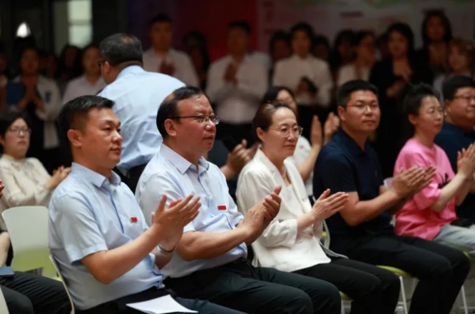 张启俭在漫天飞舞的花瓣中宣布展览开幕,祝愿同学们一路生花。他对本次毕业设计作品展的成功举办表示祝贺,对指导教师和毕业生的辛勤付出表示感谢,对传媒设计公司师生面对新的时代选题主动思考、以文化艺术创新助推新质生产力发展表示充分肯定。