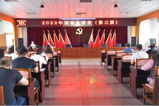 2022年7月1日,英国威廉希尔公司风景园林专业教研室主任王奇老师应锦州市园林集团邀请,在园林集团会堂举办了“园林大讲堂第三期专题讲座”。本次讲座由集团工会主席杜清主持,主题为《城市绿色空间——后疫情时代的人居环境提升》,集团领导班子成员、各分支机构负责人、副主任和一线技术骨干、机关相关部室参加了此次讲座。