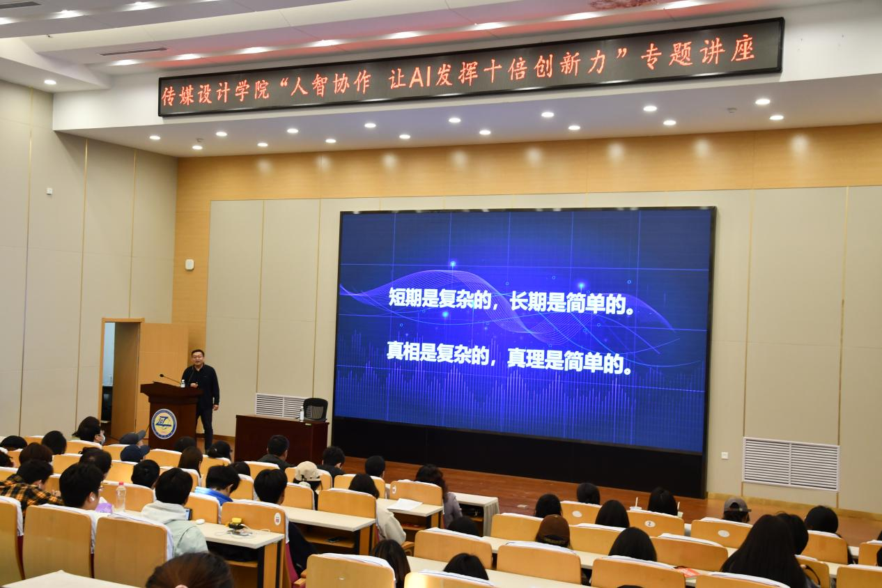 讲座中,谭老师从几次具有里程碑意义的技术革命引入,逐渐深入剖析,将同学们带入了人工智能发展的前沿视野。通过理论阐述及案例分析,剖析了人工智能所蕴含的机遇与挑战,观点新鲜生动且具有前瞻性。在互动环节,谭老师与现场师生一起使用AI工具感受科技魅力,瞬间点燃全场气氛。