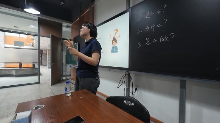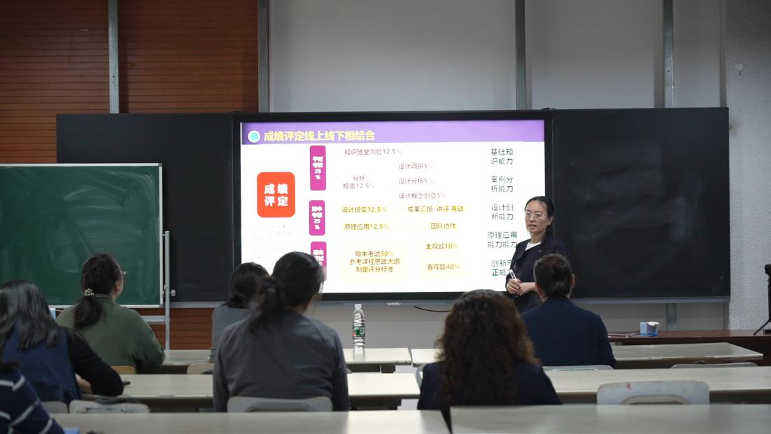袁媛老师(全国青年教师教学竞赛二等奖获得者)围绕“教学设计”展开分享。她强调,教学设计是教学实践的“指南针”,需紧扣教学大纲,明确知识、能力、思政三维目标,并注重重难点突破的连贯性。她以全国青教赛评分标准为例,解析了教学设计的核心要素,强调“教学反思”的重要性,提出“教学有法、教无定法、贵在得法”的理念,鼓励教师通过持续改进实现螺旋式提升。