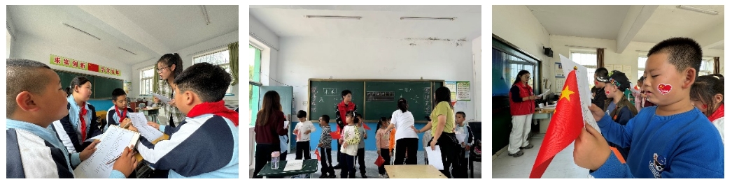 9月18日下午,“艺+义”美育浸润行动计划项目师生志愿团队抵达女儿河乡中心小公司后,紧张有序地开展起诗朗诵展演的各项准备活动。每4名员工志愿者组成一个团队,7个团队到不同班级组织活动。由普通话发音标准、受过播音主持专业训练、有过朗诵主持舞台经验的同学担任领队,将事先设计好的稿件分发给小同学,帮助小同学们熟悉稿件,扫清生字障碍,纠正发音偏误,标注停顿重音,感悟情感情绪,处理朗诵技巧,排演动作队形,分发贴纸道具等。